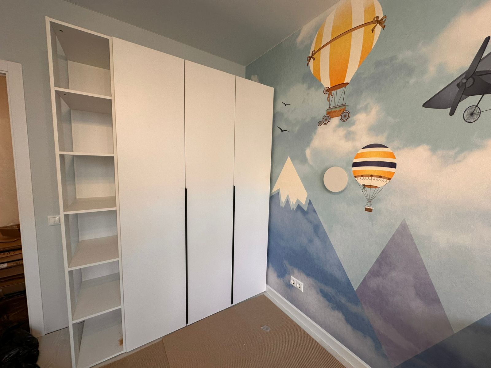 Шкаф имеет три распашные двери, которые оснащены доводчиками для плавного и бесшумного закрывания.