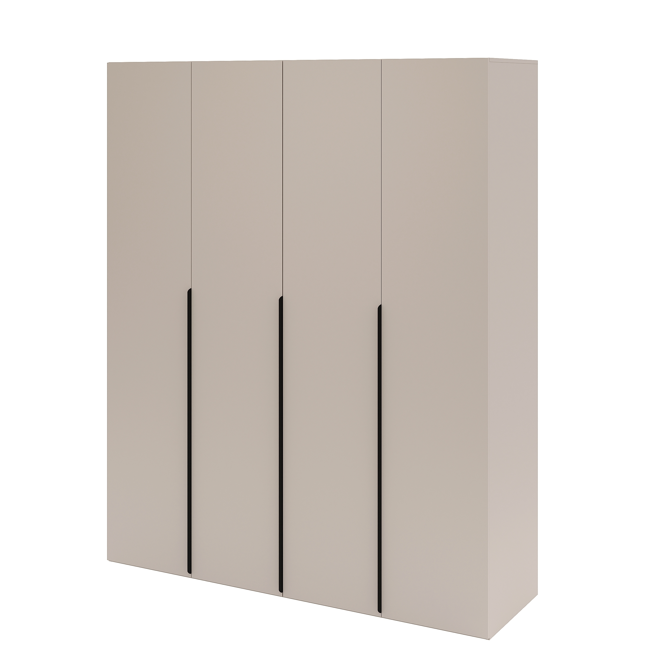 Шкаф имеет четыре распашные двери, которые оснащены доводчиками для плавного и бесшумного закрывания.