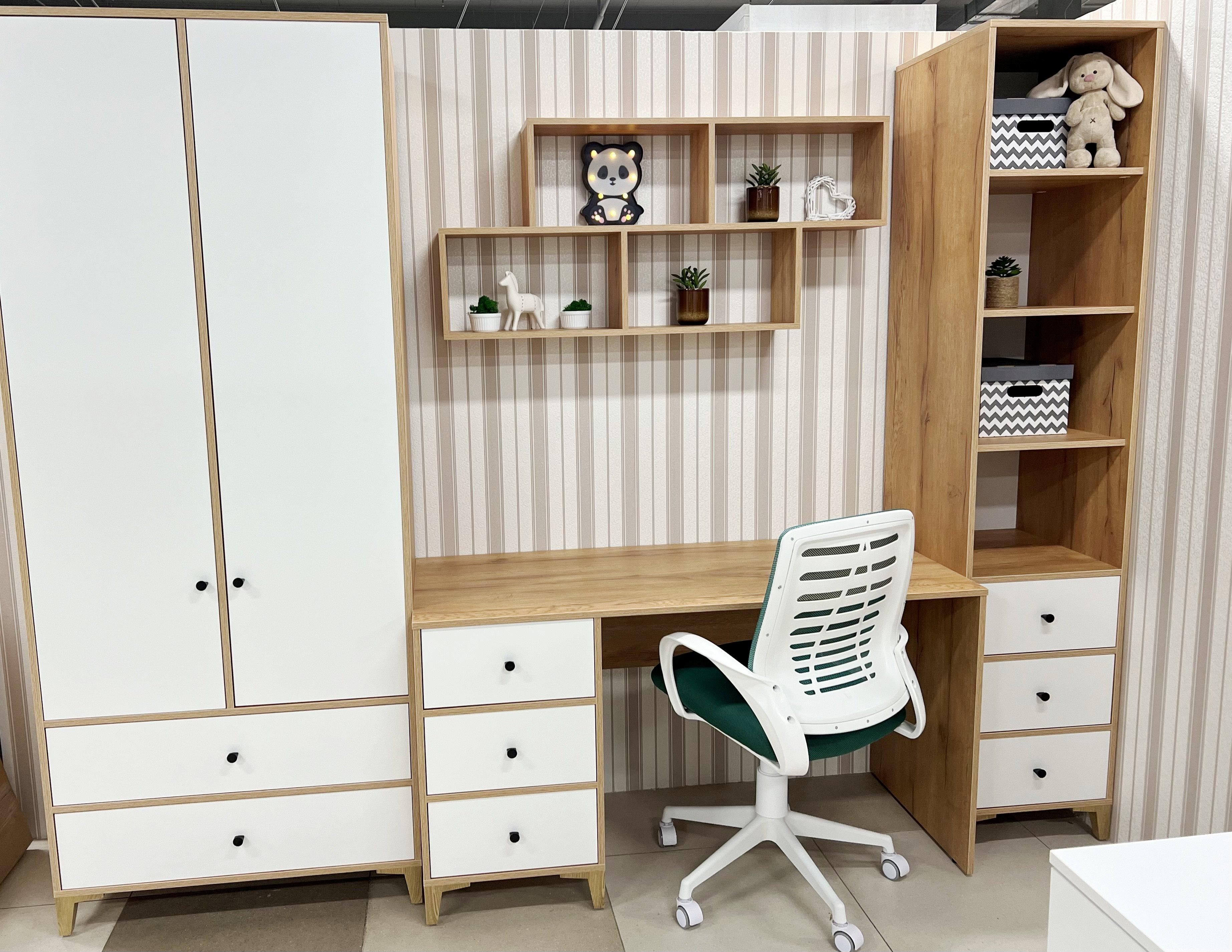 <comment>Присматриваем двухъэтажную кровать, шкаф и стеллажи в детскую. Специально приехали в шоу рум. Дочке очень понравился стеллаж из этой коллекции) Вообще, выбор детской впечатляет! Обязательно вернемся к вам </comment>