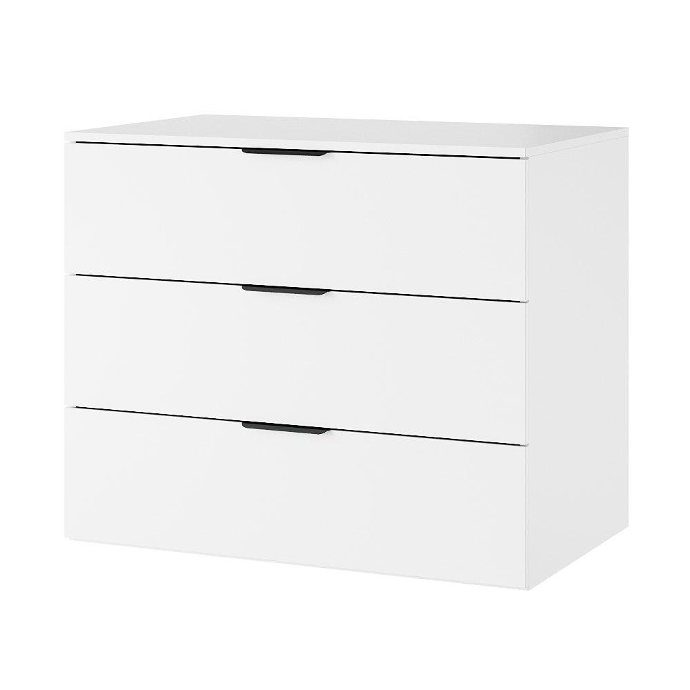 Преимуществом нашего комода являются шариковые направляющие полного выдвижения с доводчиками, что обеспечивает плавное и бесшумное открытие и закрытие ящиков.