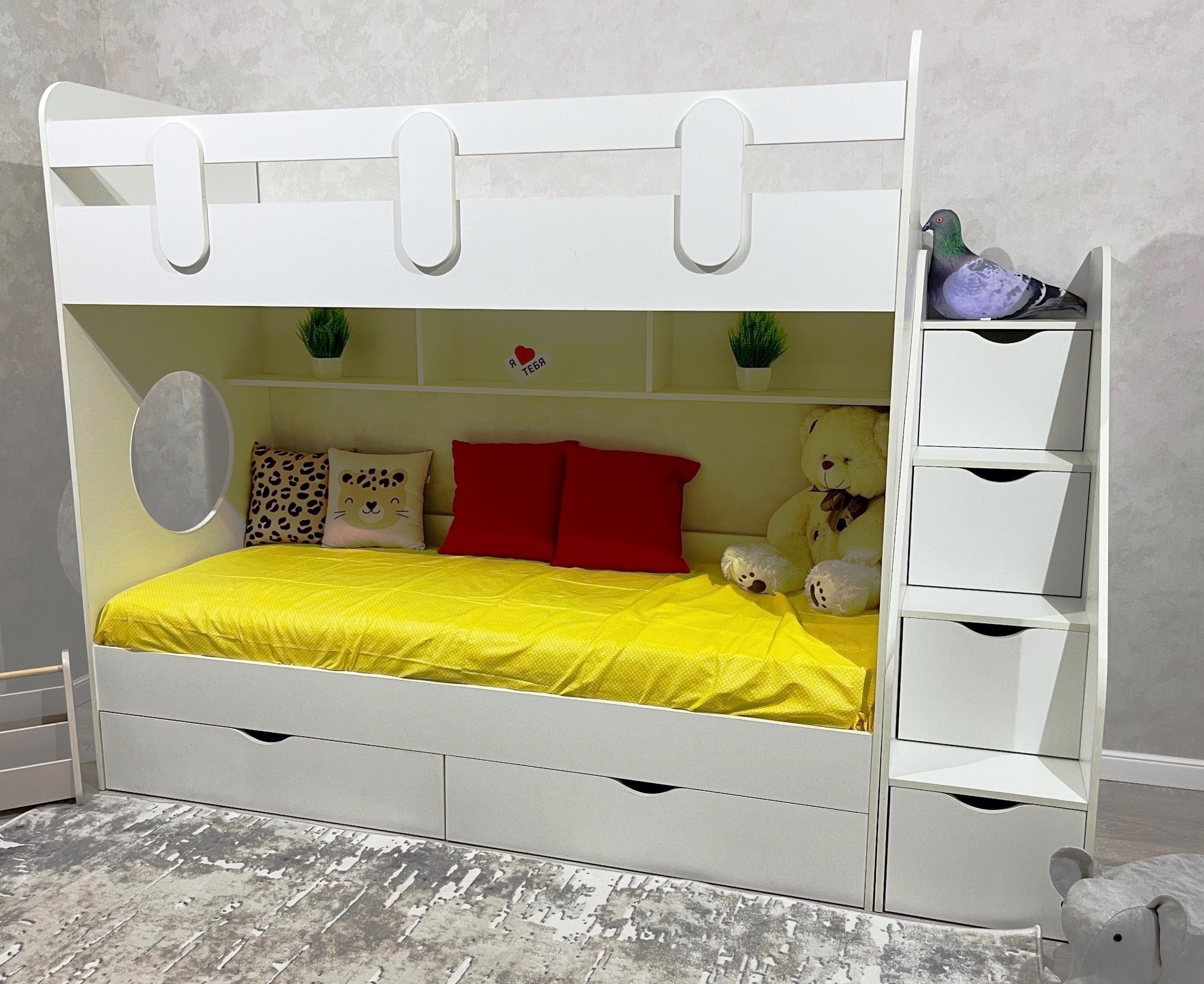 * Основание кровати – прочный настил ЛДСП (НЕ РЕЙКИ!), который позволяет ребенку спать на ровной поверхности, что важно для детской спины.