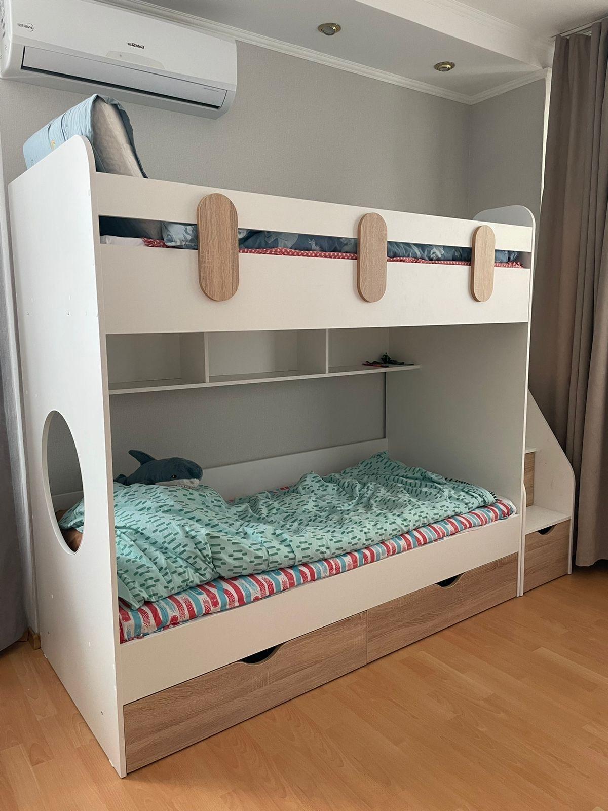 <comment>Вот такую красоту муж сделал с помощью вашей кровати). Дети очень хотели кроватку с окошками))). Спасибо вам огромное. Шкаф тоже очень удобный и стильный. </comment>
