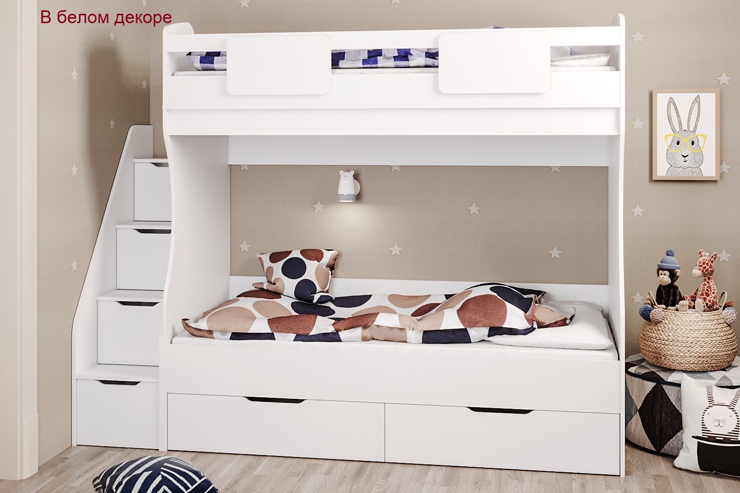 Двухъярусная кровать Миа - современное и стильное решение для оформления комнаты для двоих детей.