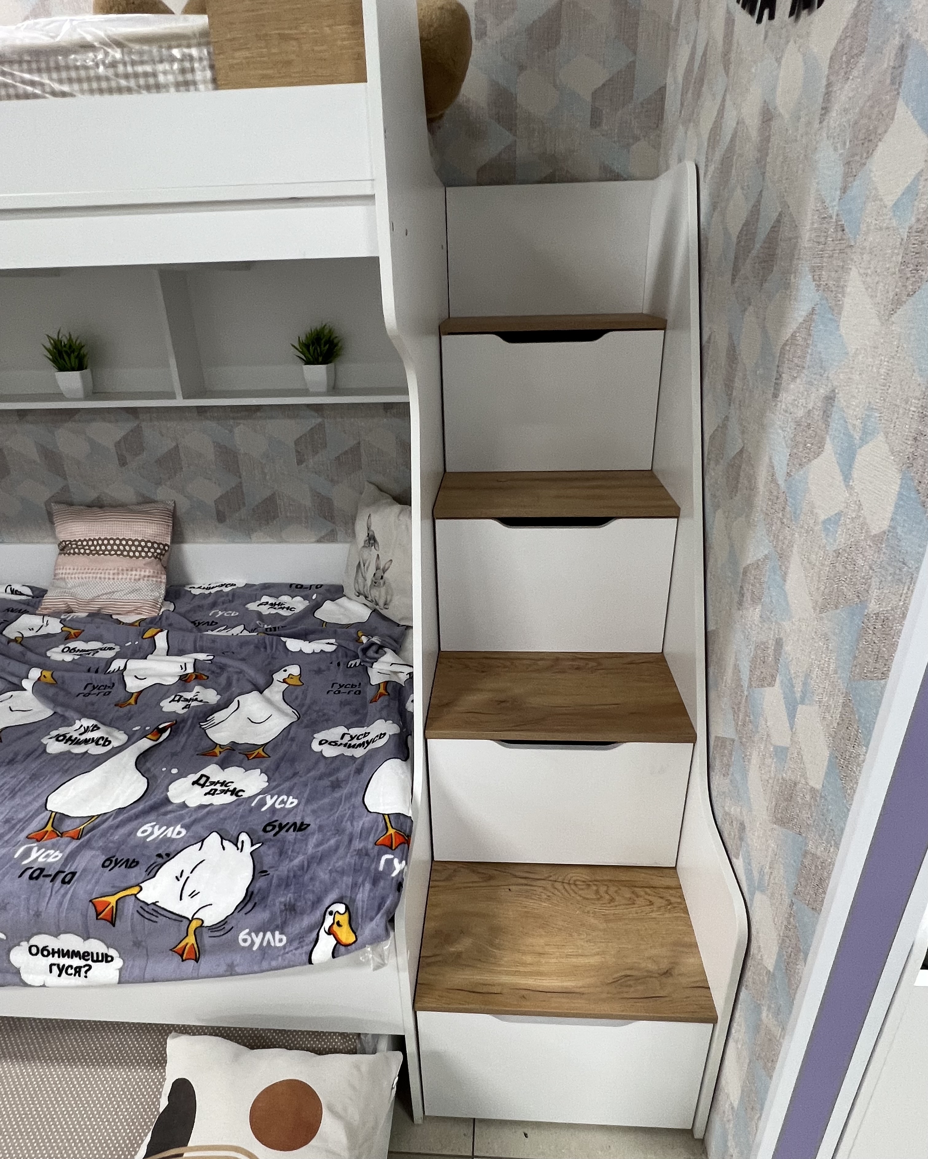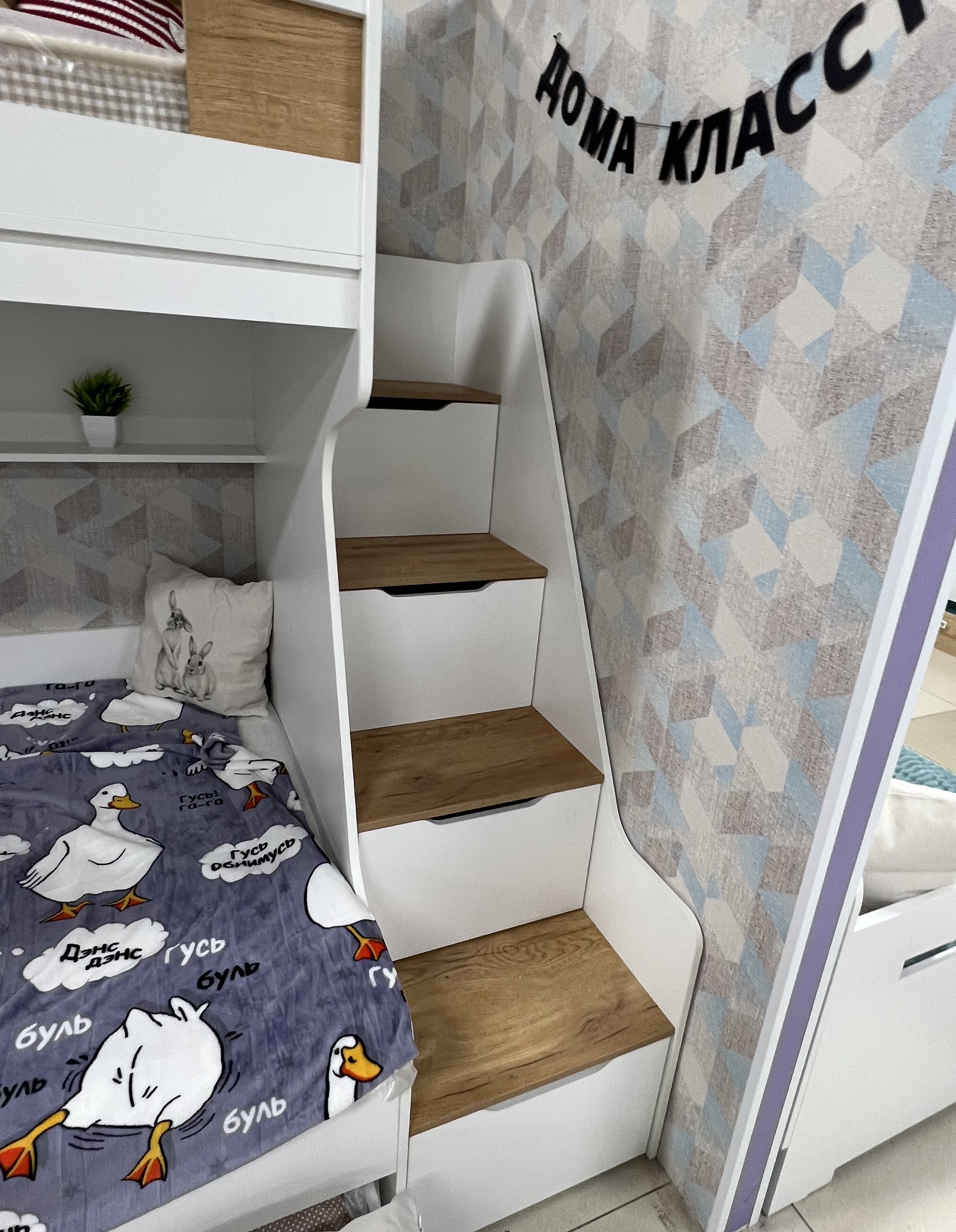 - Максимальная функциональность - два яруса обеспечивают удобство и экономию пространства, а дополнительное спальное место легко выдвигается, когда это необходимо.