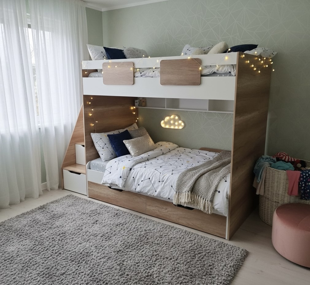 Вместо них - цельный и прочный настил из ЛДСП, который выдерживает сверхвысокую нагрузку и позволяет расположиться даже взрослому с ребенком.