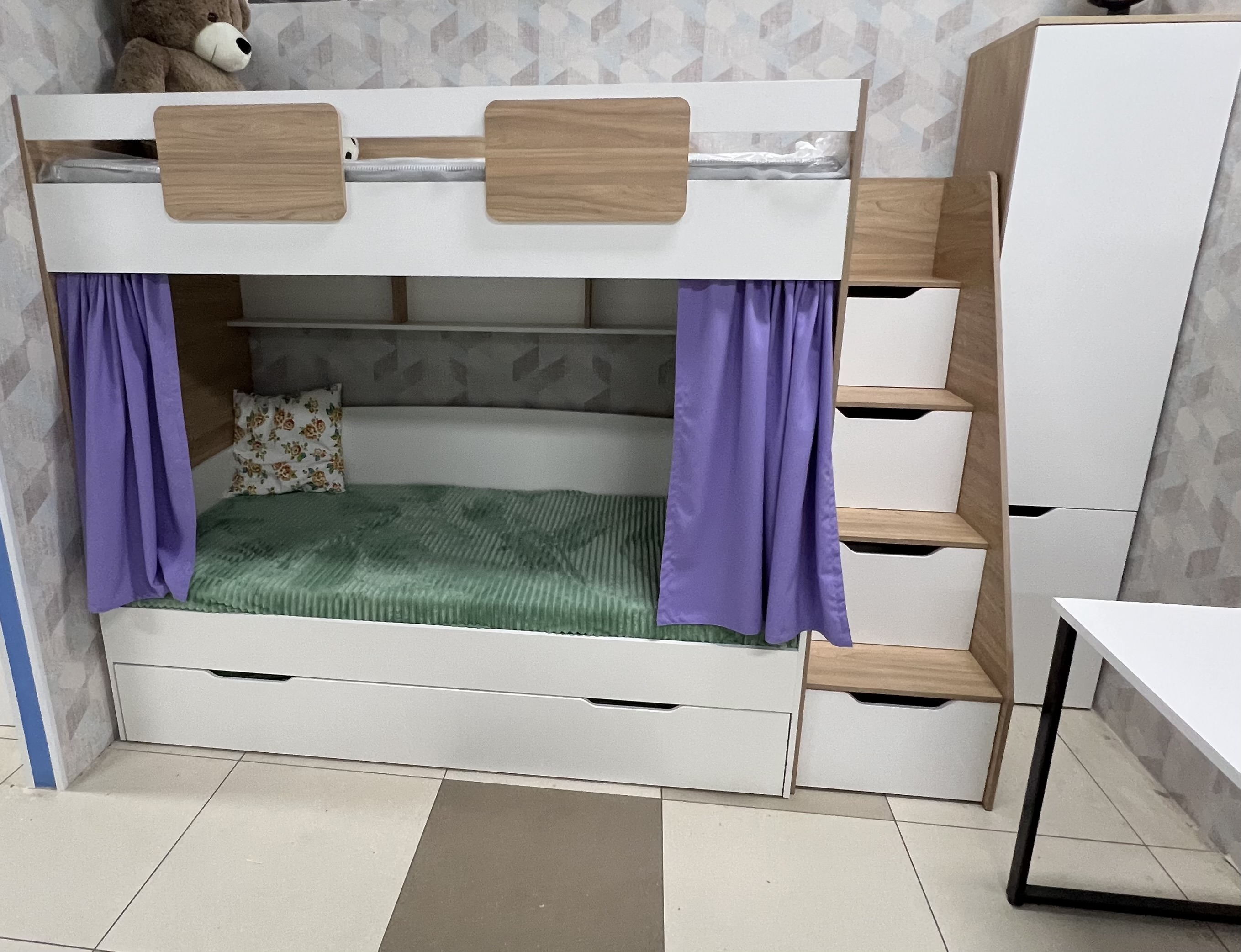 Основание кровати – прочный настил ЛДСП, который позволяет ребенку спать на ровной поверхности, что важно для детской спины.