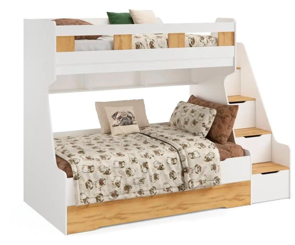 Высокая нагрузка на спальные места. Дополнительное выдвижное спальное место. Удобная лестница. Высокий, безопасный бортик. Прочные ящики! |