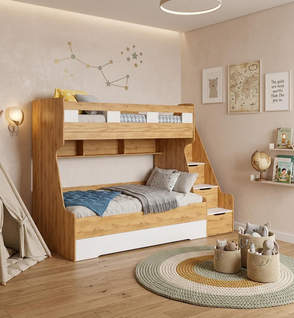 Кровать двухъярусная РУМ с дополнительным выдвижным третьим спальным местом - идеальное решение для детской комнаты!