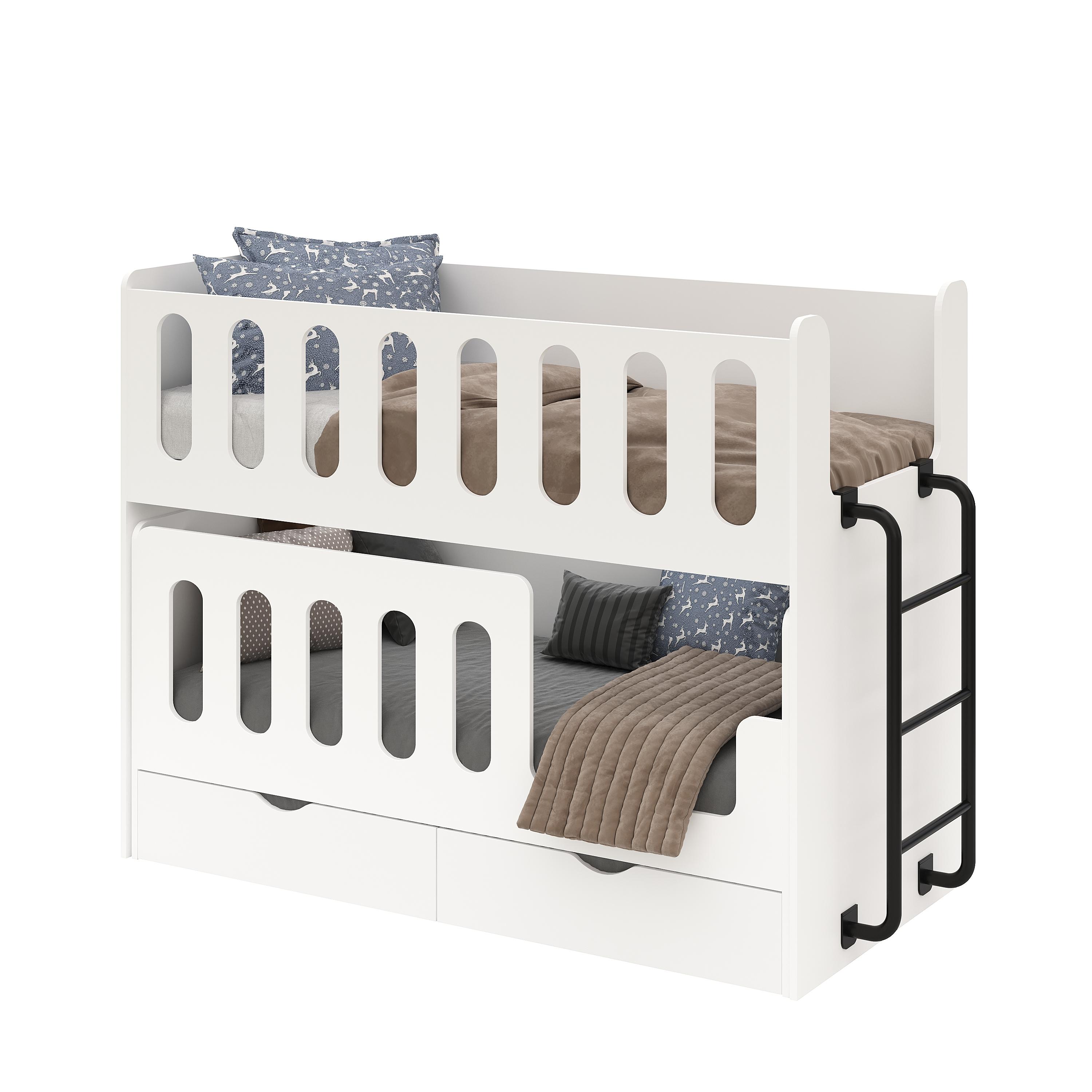В нижнюю кровать встроены два ящика на шариковых направляющих.