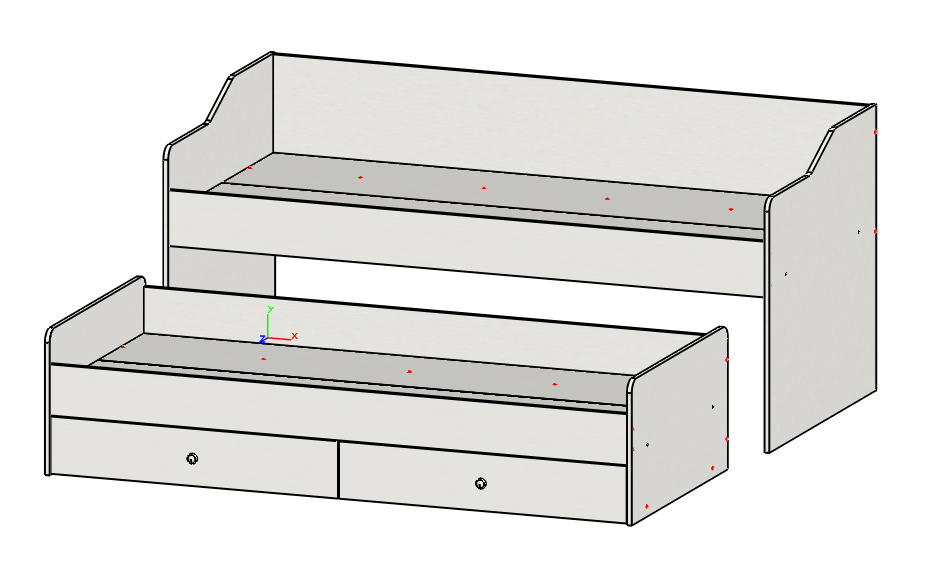 Торцы кровати закруглены и обработаны ударопрочной кромкой ПВХ