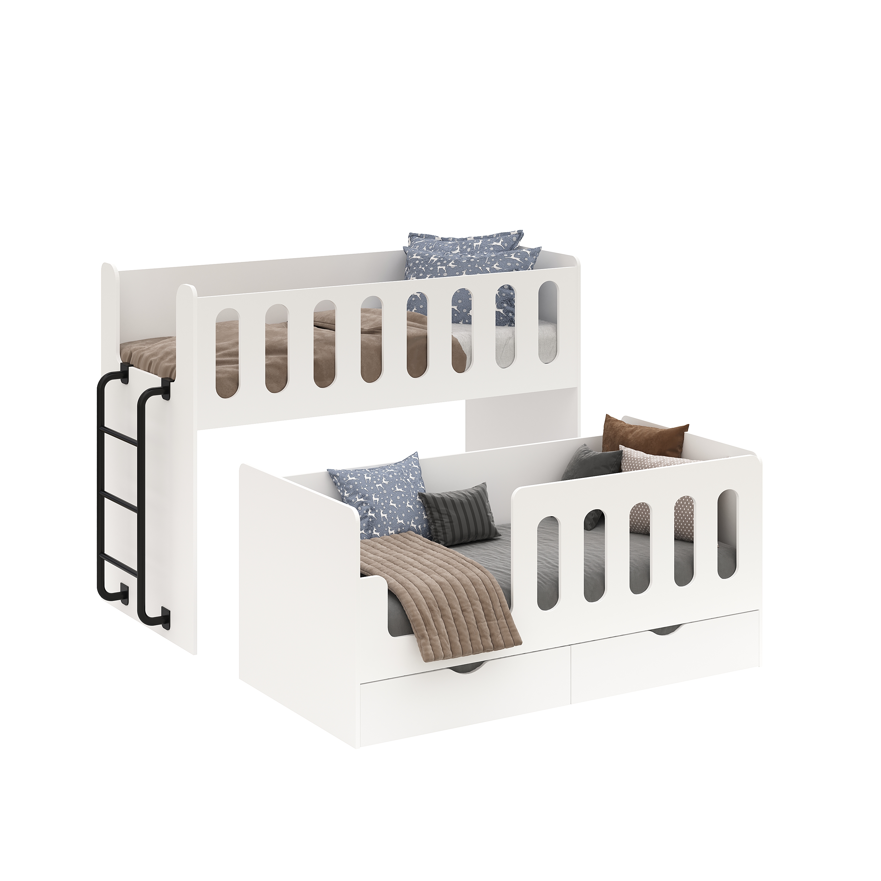 Двухъярусная кровать Близняшки с выдвижным спальным местом - отличное решение для детской комнаты.