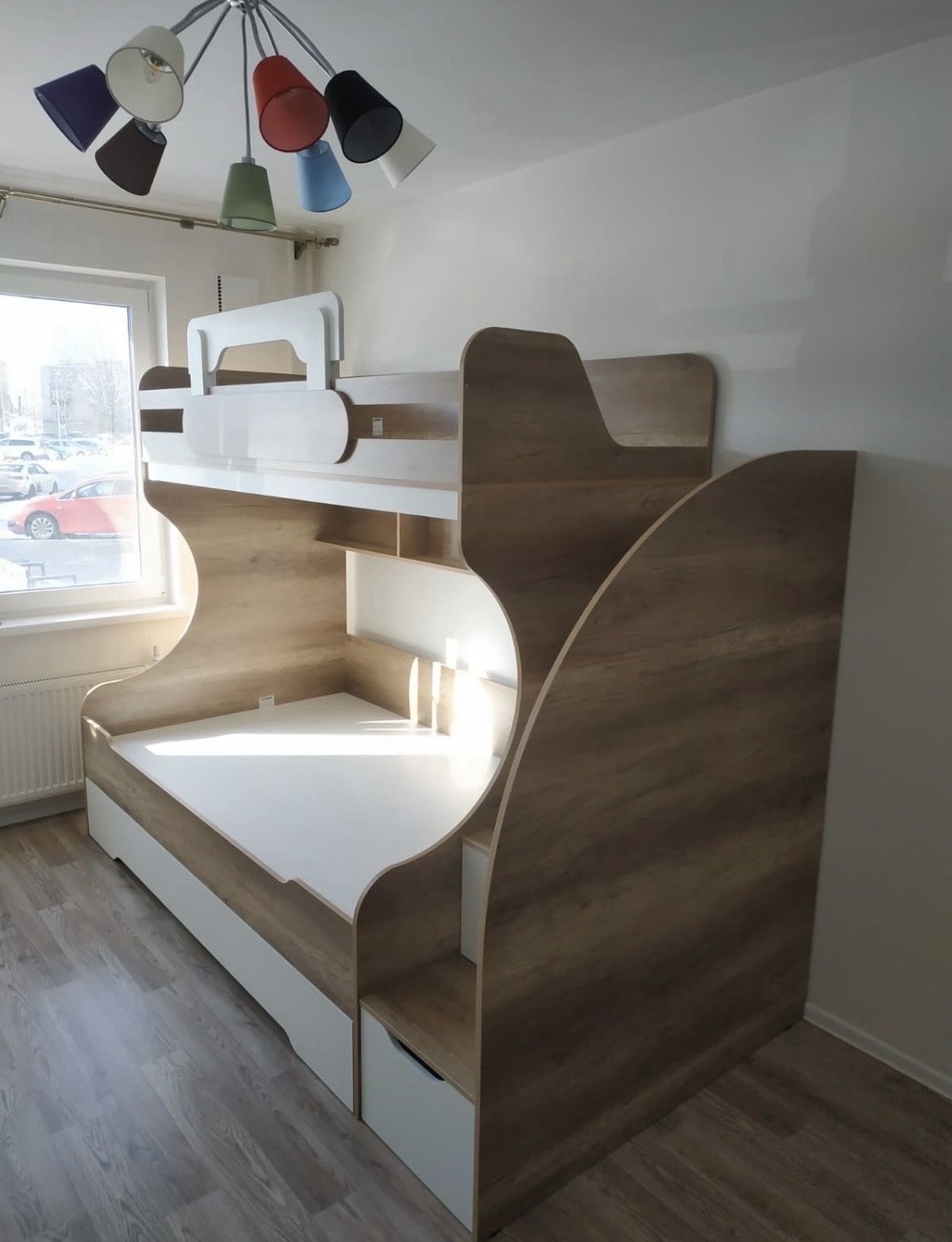 ЛДСП Е0,5. Толщина 16 мм. КРОВАТЬ ДОСТУПНА В РАСЦВЕТКАХ: полностью белый, дуб каньон + белый, бетон пайн + белый, гаскон пайн + белый, дуб золотистый + белый, дуб сонома + белый.