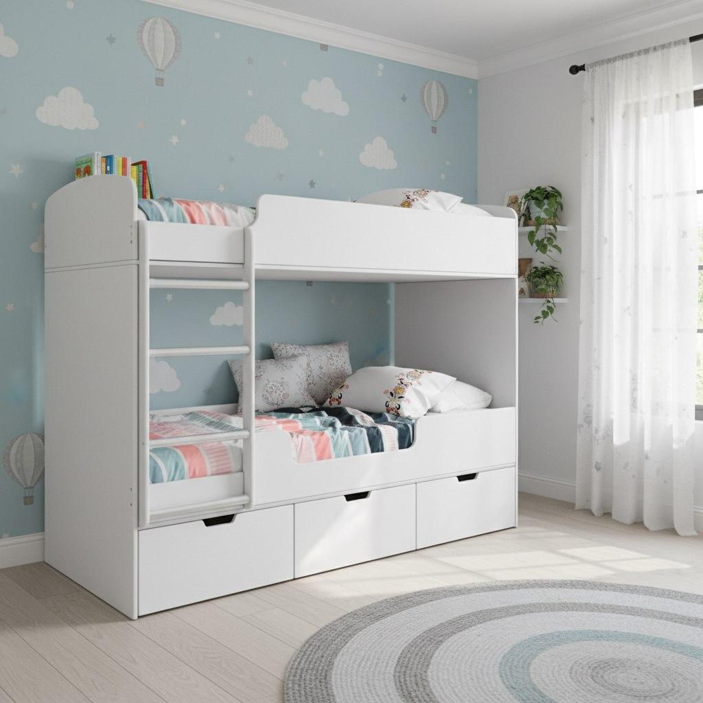 Прочная конструкция кровати выдерживает нагрузку до 90 кг на каждое спальное место.