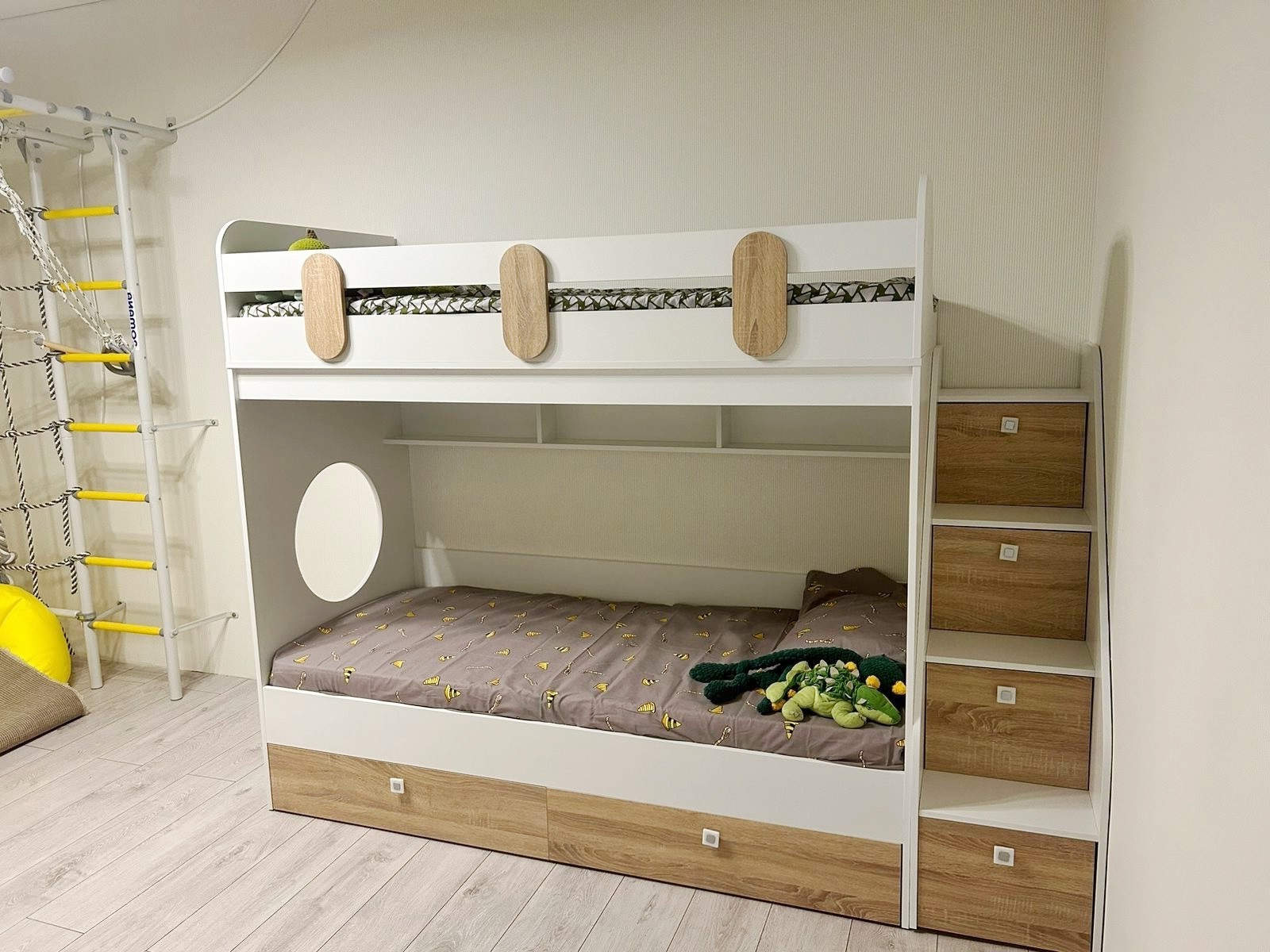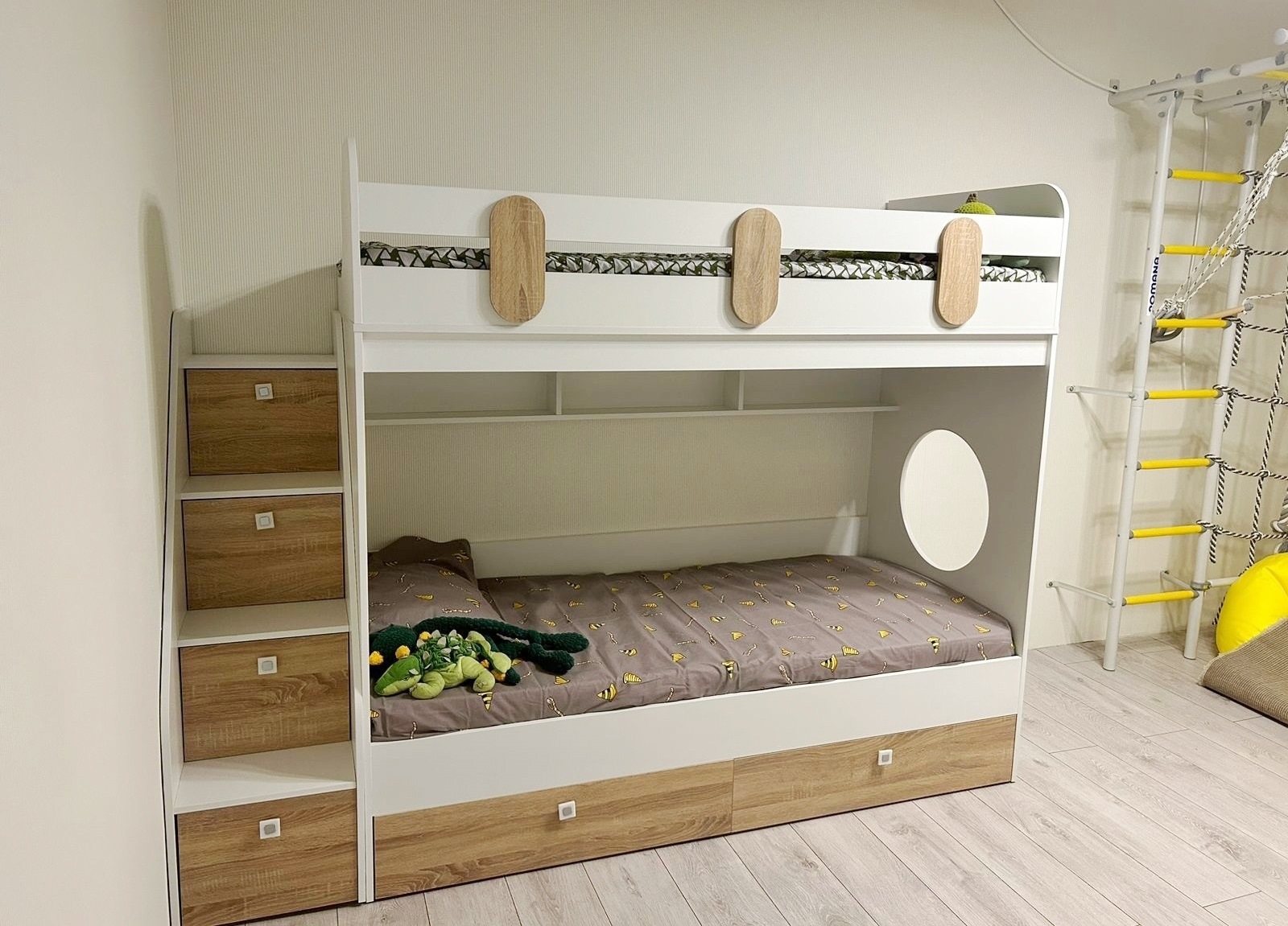 Двухъярусная кровать Фортуна-2 с удобной лестницей, высоким, безопасным бортиком и комфортной высотой.