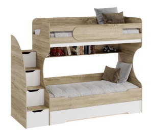 Габариты кровати с учетом лестницы: ширина 2493, глубина 958, высота 1940 мм