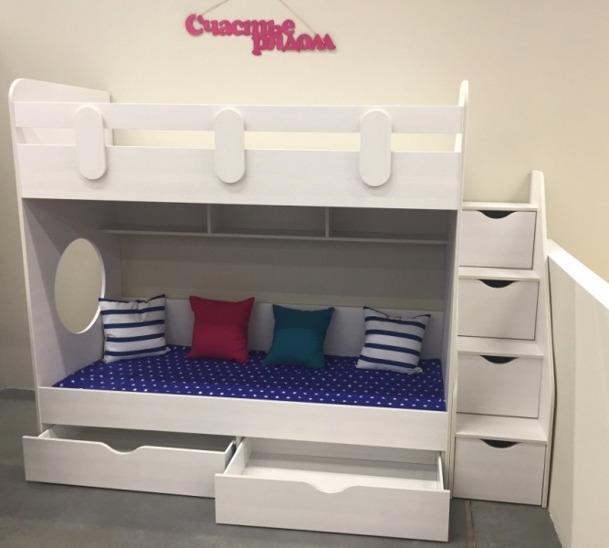 Габариты кровати с учетом лестницы: ширина 2436 х высота 1736 х глубина 955 мм