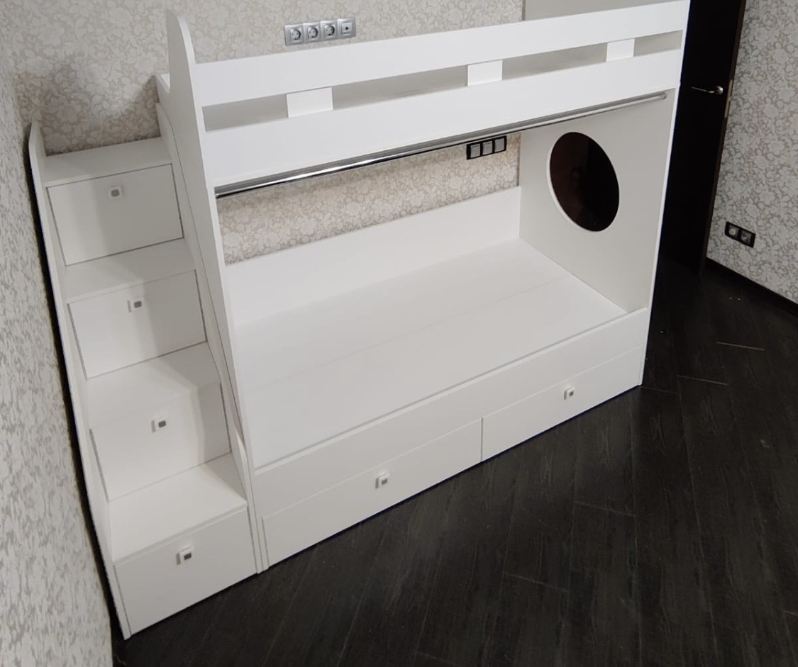 Вместо них - цельный и прочный настил из ЛДСП, который выдерживает сверхвысокую нагрузку и позволяет расположиться даже взрослому с ребенком.