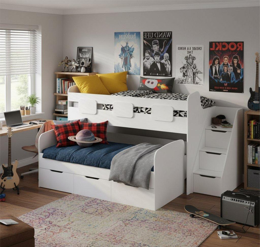 Если в комнате мало места, на помощь приходит двухъярусная кровать.