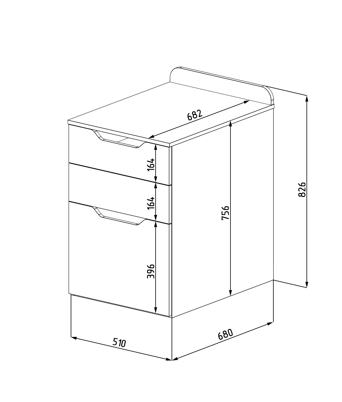 Габариты: ширина 510, общая высота 826, глубина 682 мм