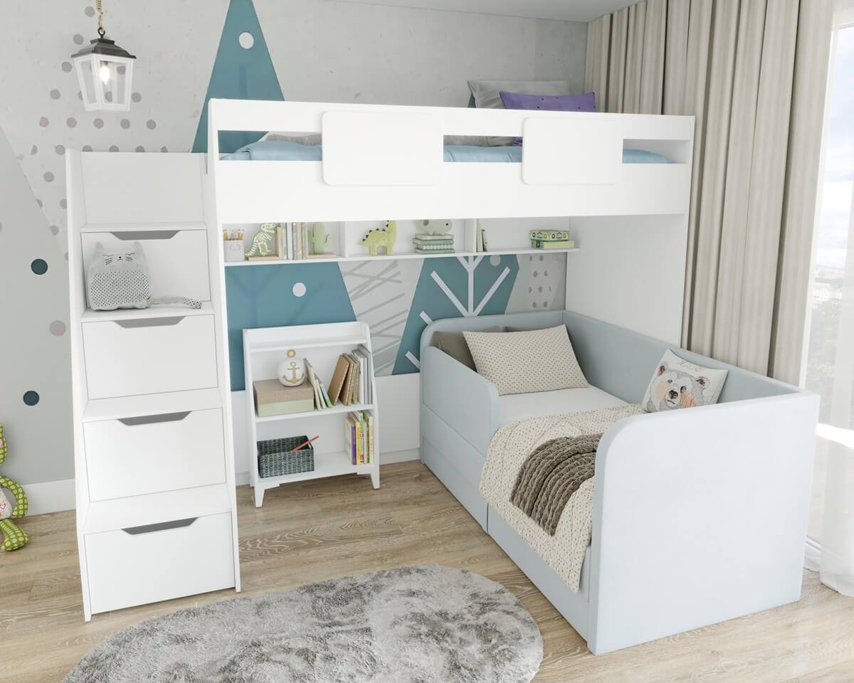 кровать-чердак Мозаика-2 + мягкая кровать Непос + стеллаж детский Уют-5