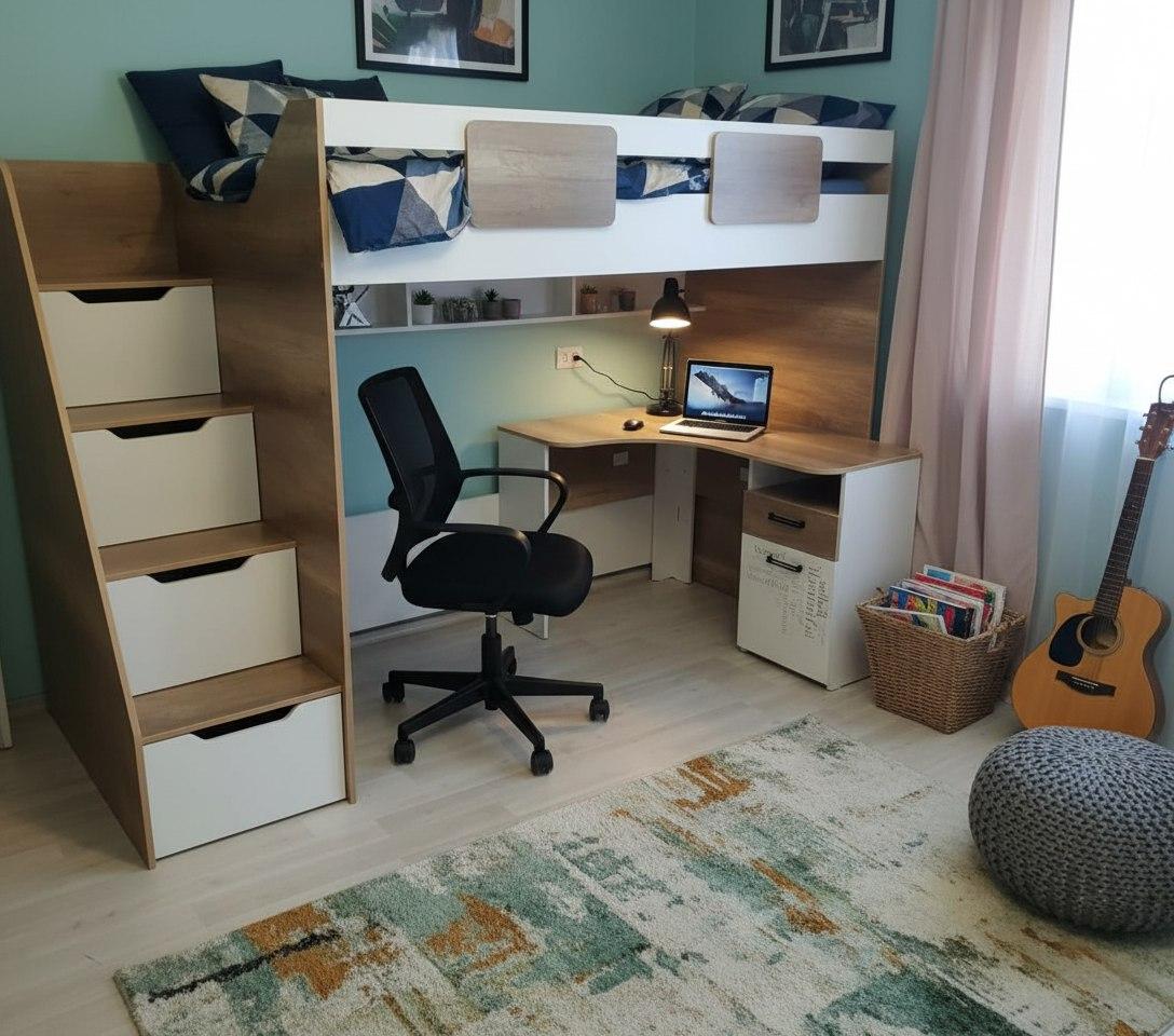 —Кровать-чердак Лайт Лофт + угловой столь Твой Стиль