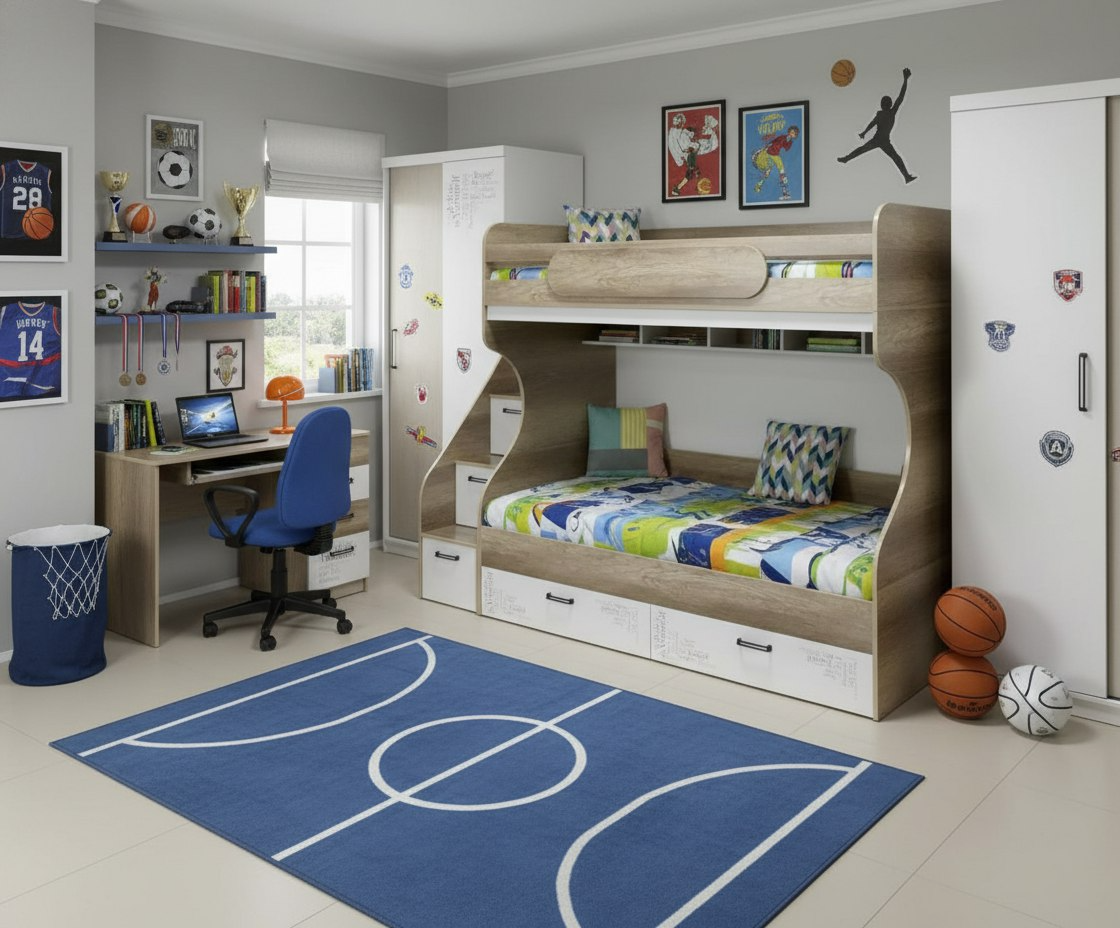Высота кровати разработана с учетом того, чтобы на втором ярусе ребенку было не душно спать.