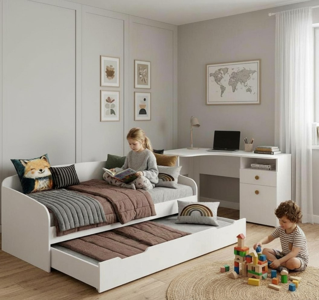 —Кровать выдвижная Двушка + стол угловой Умка