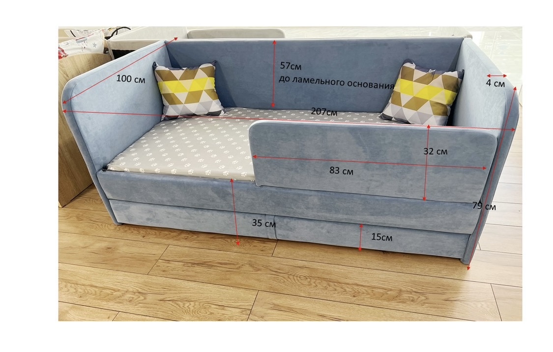 Кровать имеет съёмный универсальный бортик и выдвижной ящик (входят в стоимость кровати)