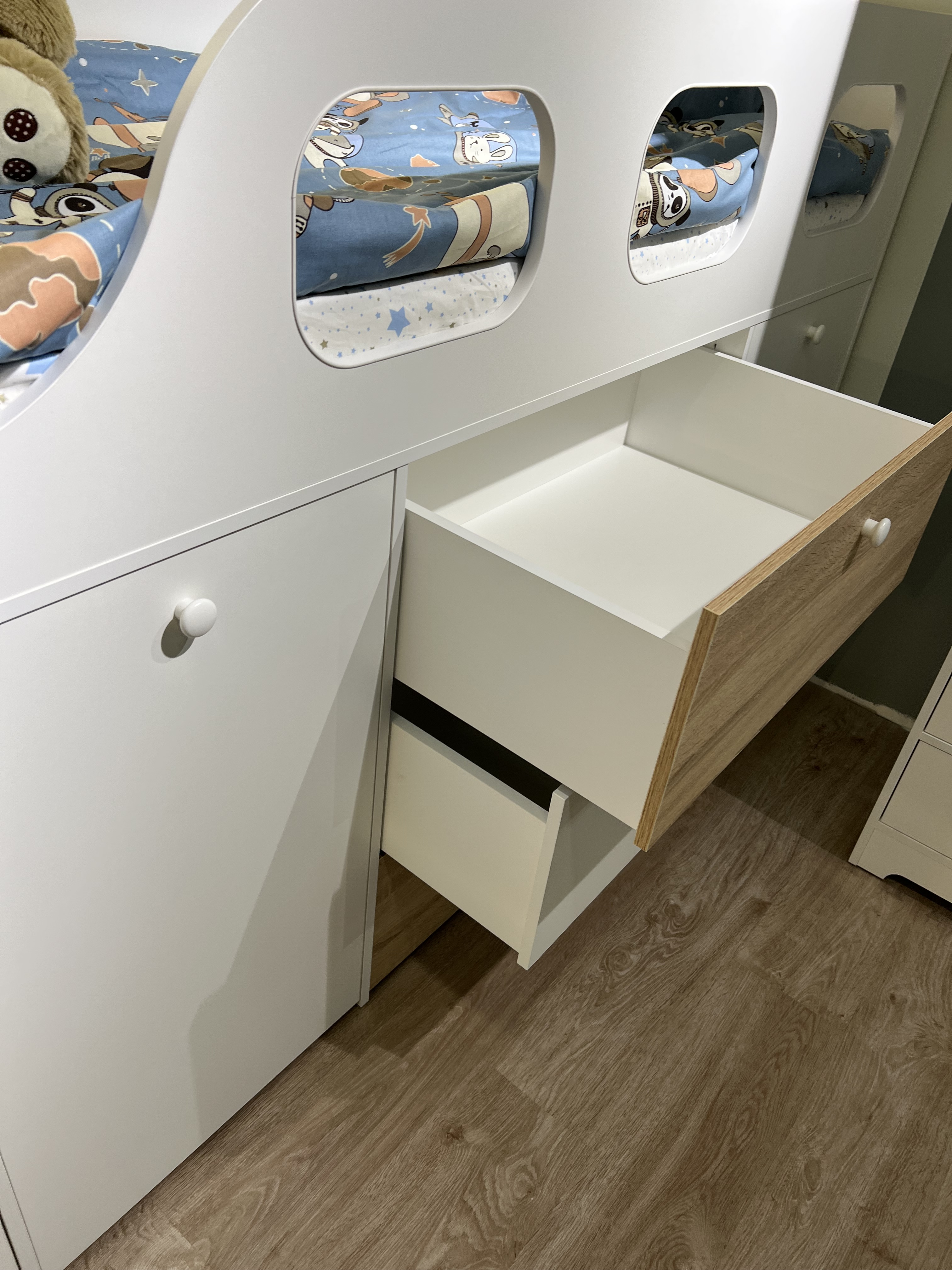 * Основание кровати – прочный настил ЛДСП (НЕ РЕЙКИ!), который позволяет ребенку спать на ровной поверхности, что важно для детской спины.