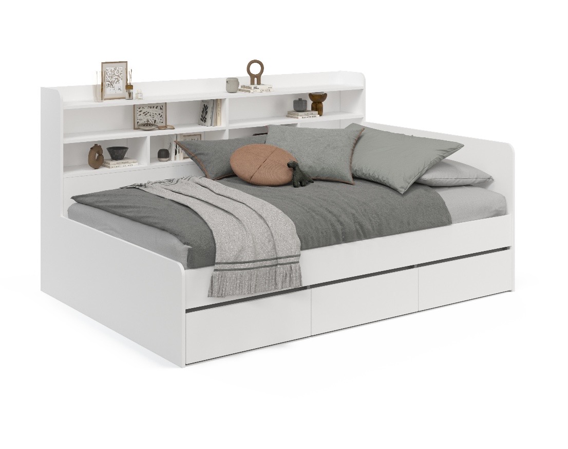 Высокая нагрузка на спальное место. Удобные полочки и ящики