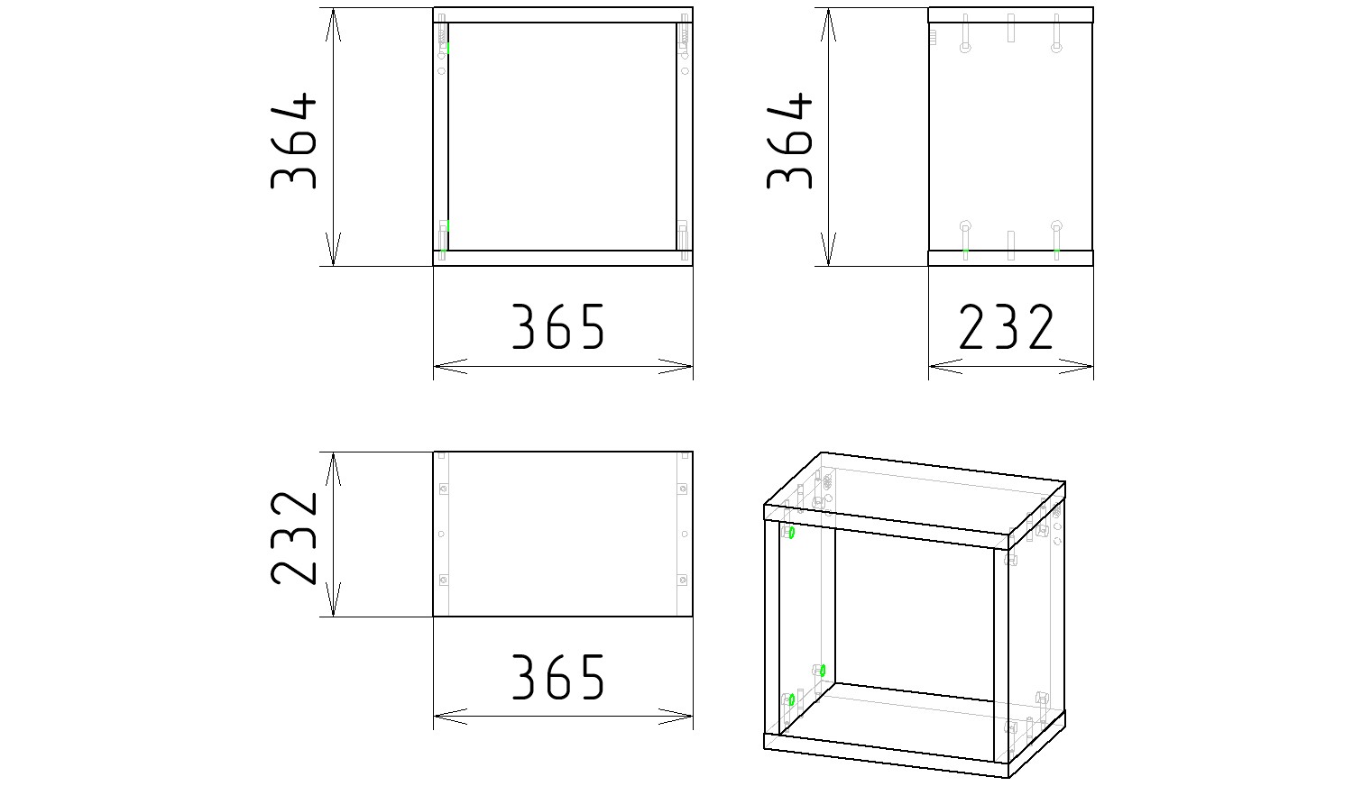 Габариты полки Куб-1: ширина 365, глубина 232, высота 364 мм