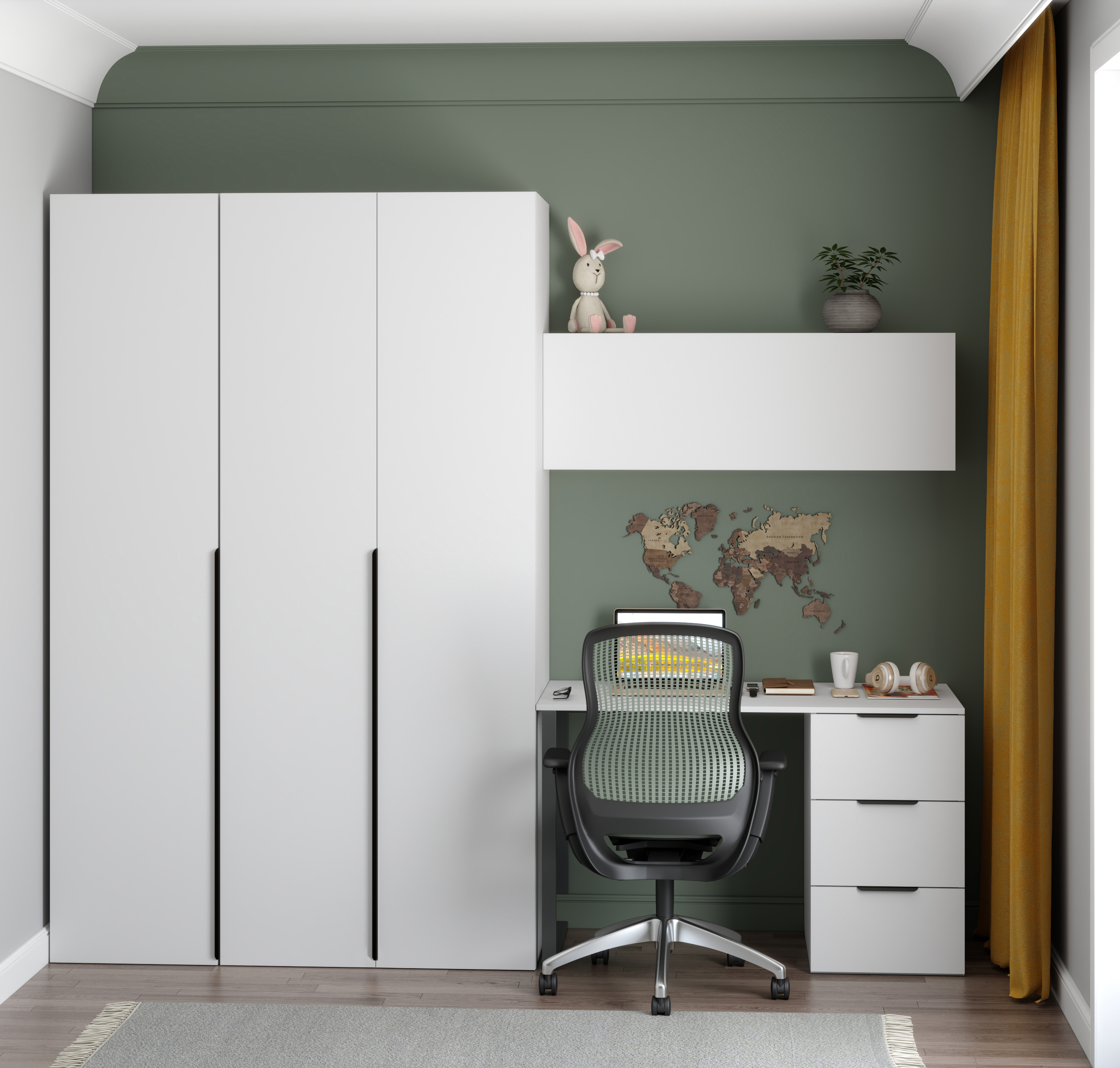 Закрытая полка с дверкой и системой тач-клик идеально подойдет не только для детской комнаты, но и для домашнего кабинета или офиса.