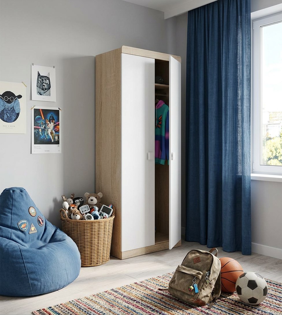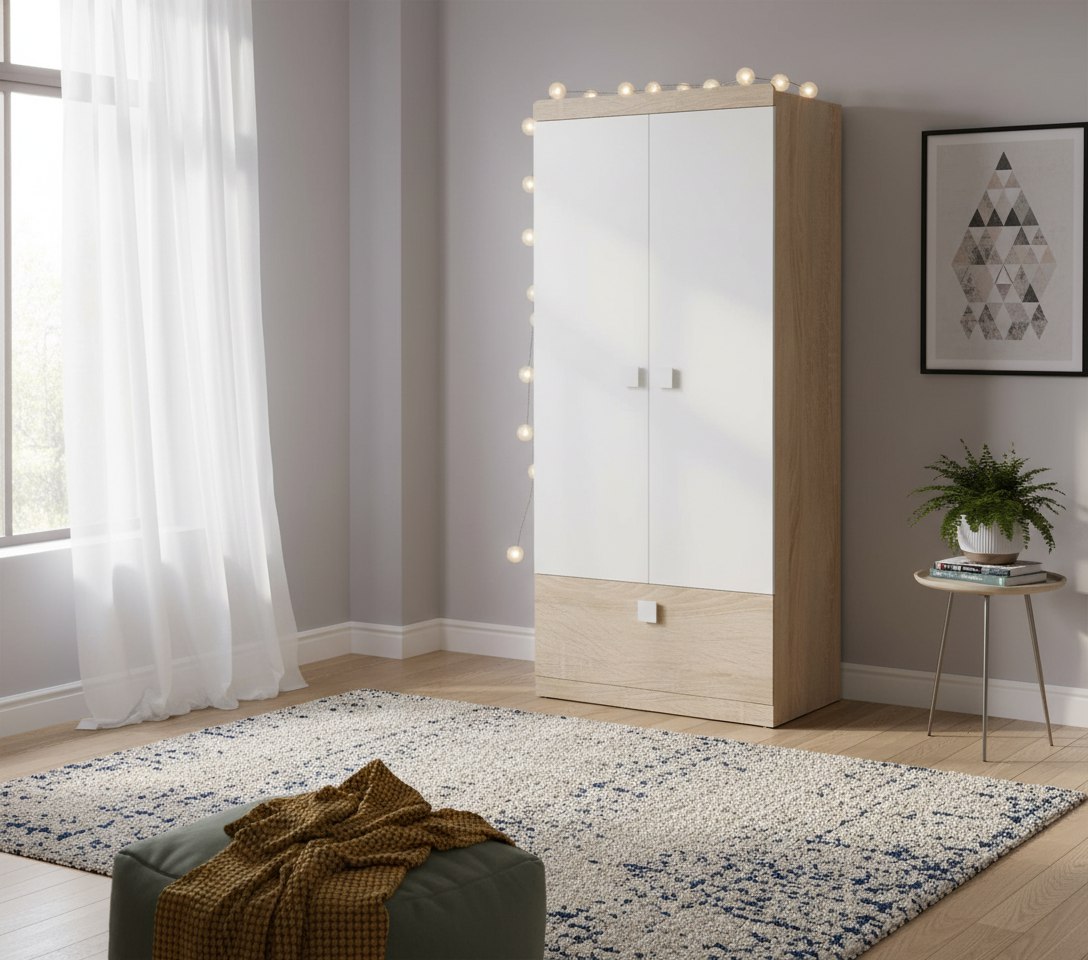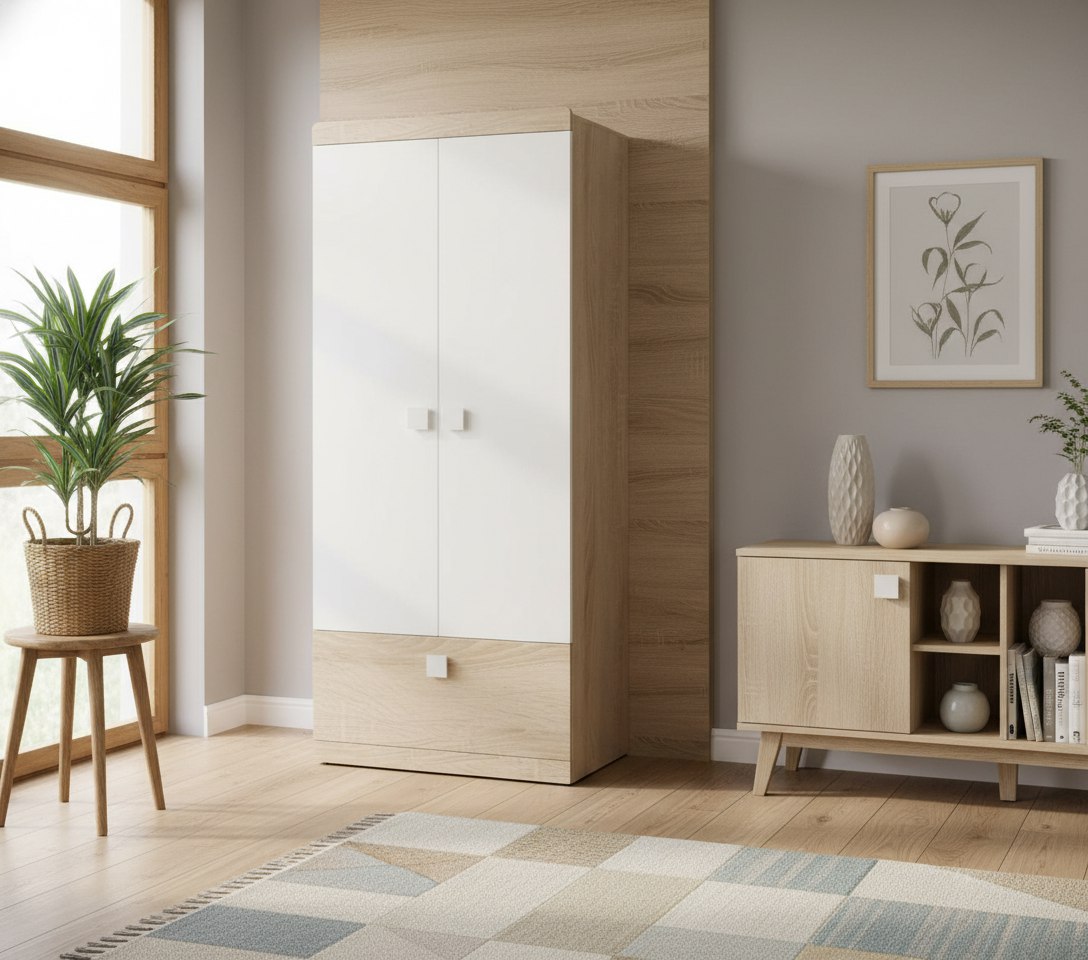 Оттенок натурального дерева "дуб сонома" дает ощущение комфорта и единения с природой, а воздушный белый цвет в интерьере работает как основа для ярких штрихов.