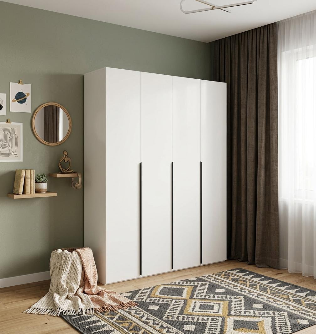Четырехдверный распашной шкаф коллекции мебели Брайт - функциональное решение для хранения одежды, обуви и аксессуаров.