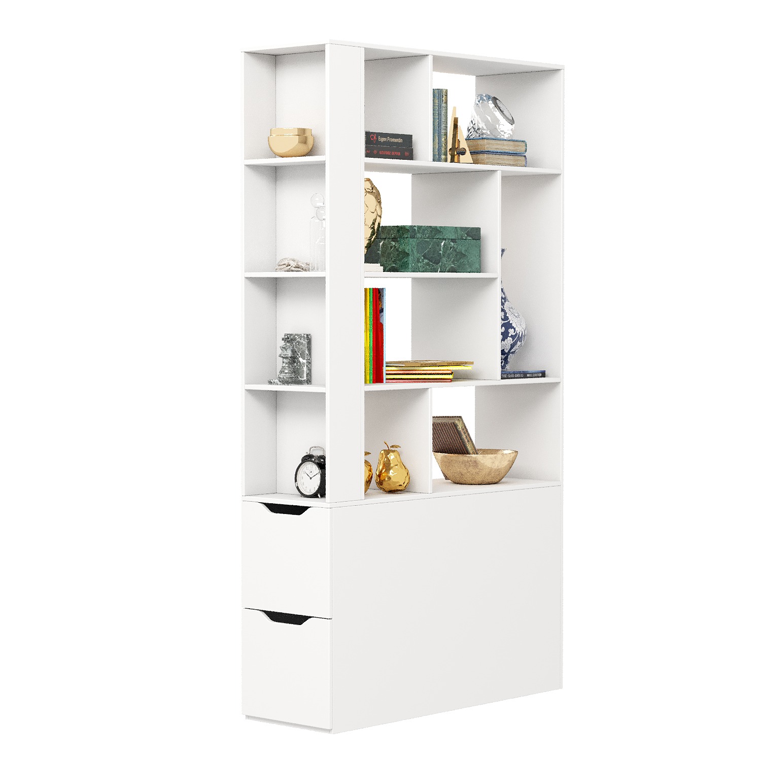 * В стеллаж встроены два выдвижных ящика на шариковых направляющих.