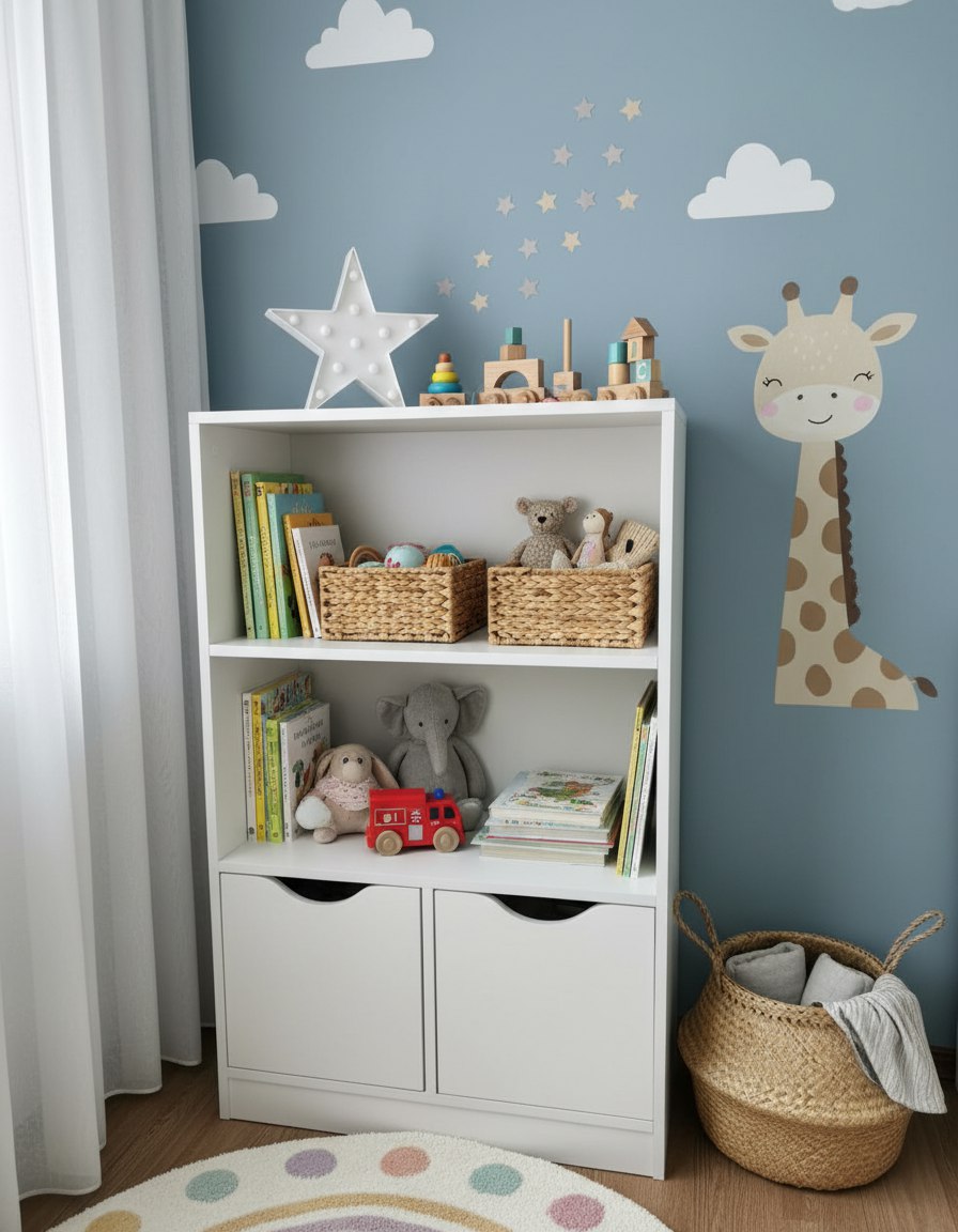 Коробки для игрушек не входят в стоимость стеллажей