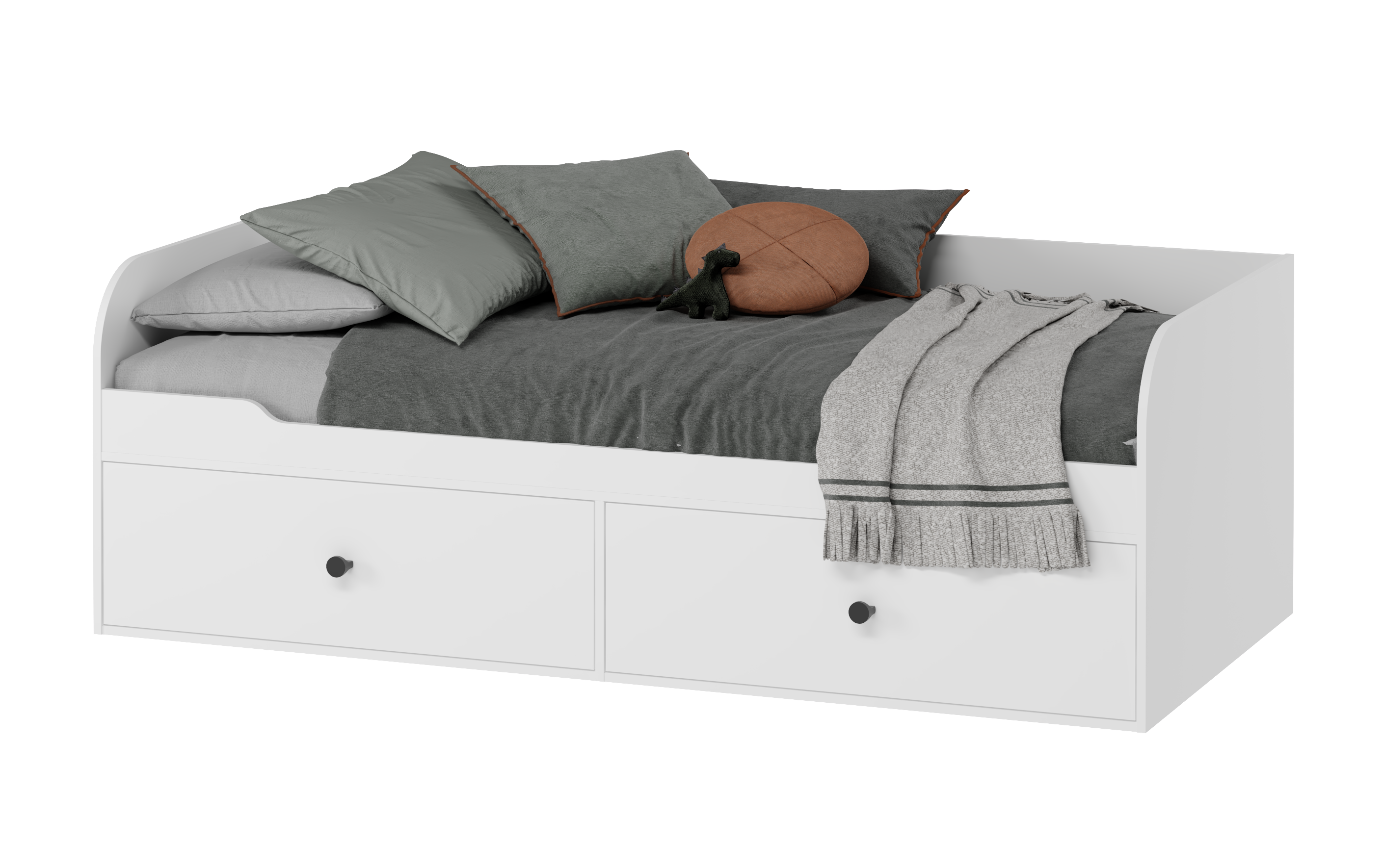 Кровать выполнена из сертифицированного, качественного, экологически чистого ЛДСП класса Е0,5 в белом цвете.