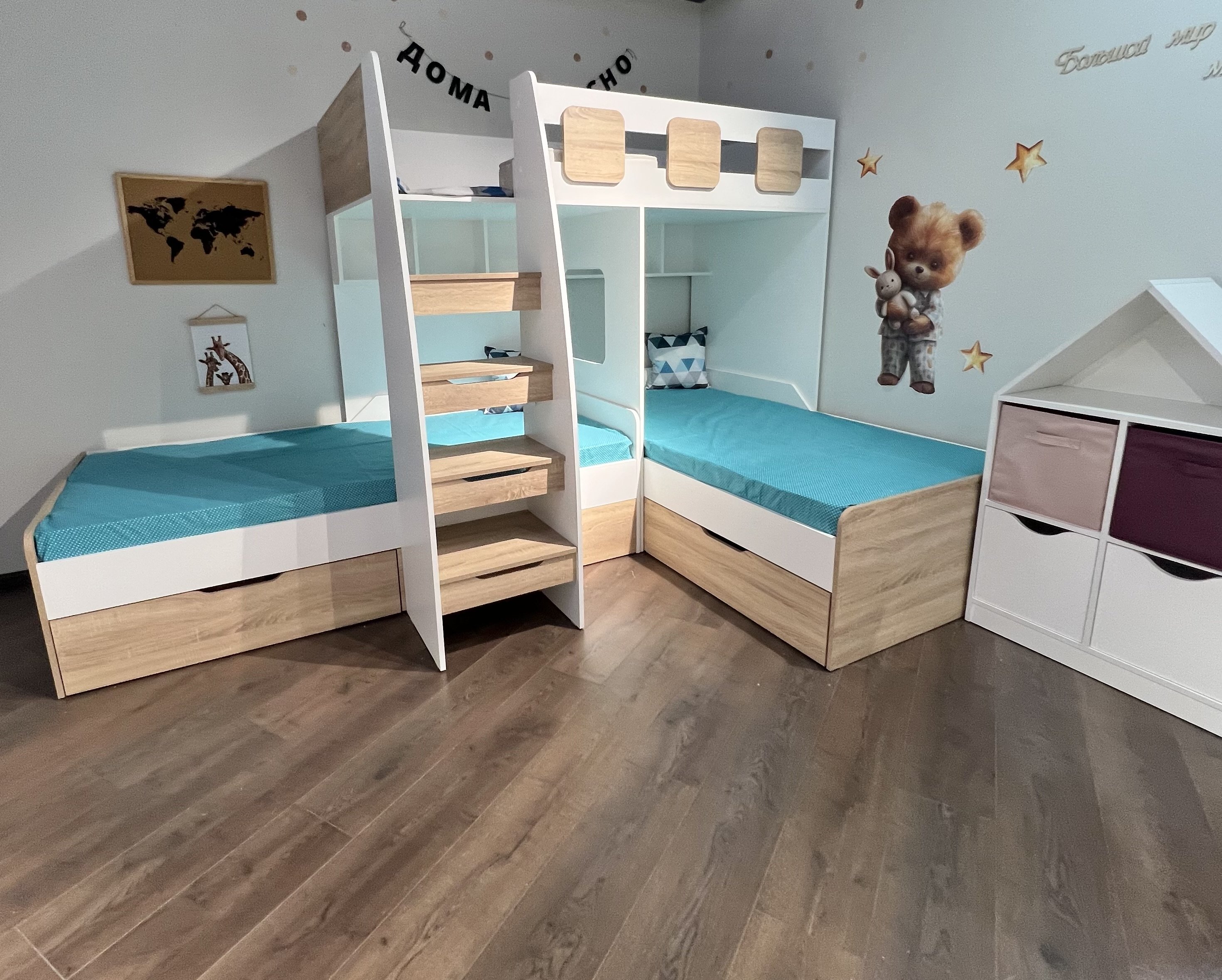 Вместо них - цельный и прочный настил из ЛДСП, который выдерживает сверхвысокую нагрузку и позволяет расположиться даже взрослому с ребенком.