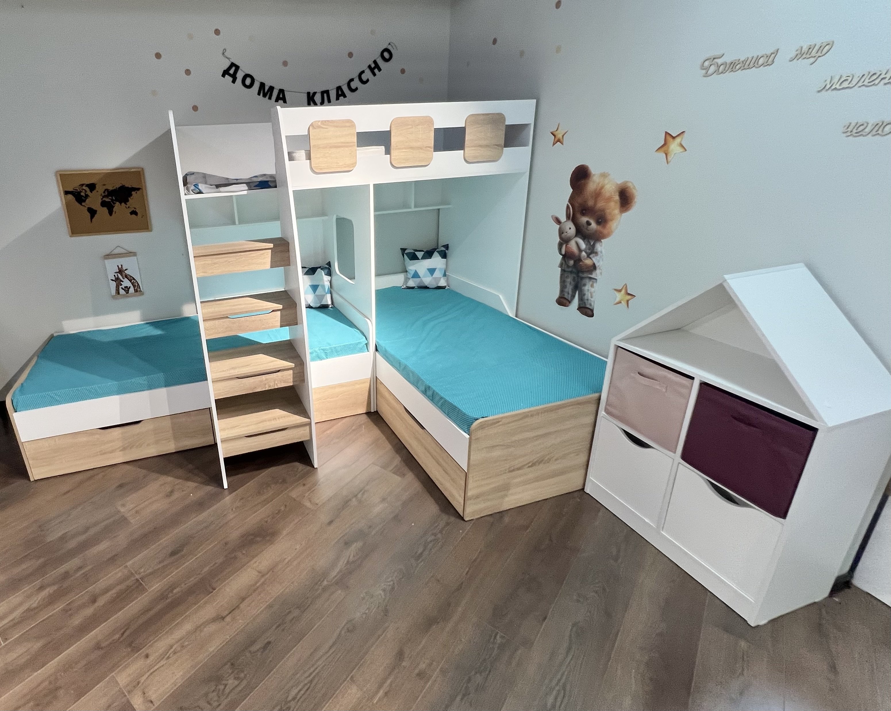 * Основание кроватей – прочный настил ЛДСП (НЕ РЕЙКИ!, который позволяет ребенку спать на ровной поверхности, что важно для детской спины.
