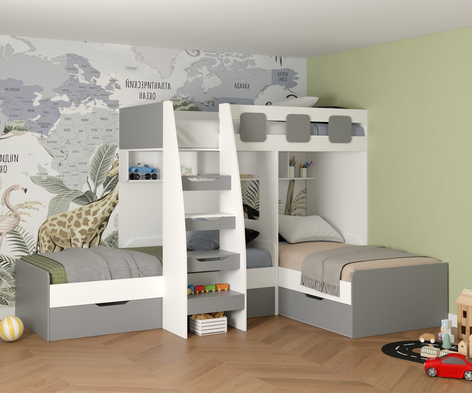 Цвет—Кровать 3-х ярусная Династия - цвет Белый+Серебро