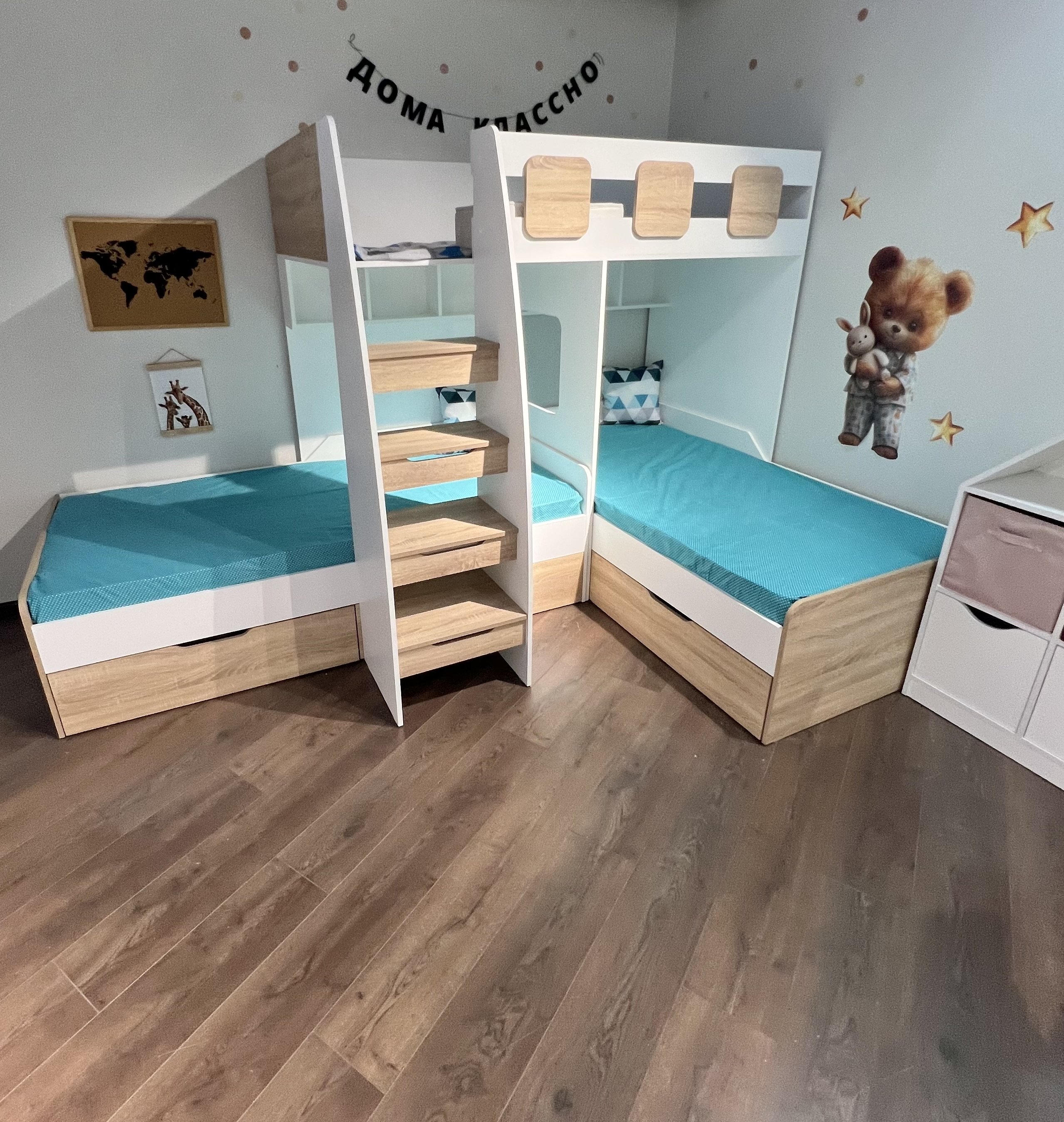 Вместо них - цельный и прочный настил из ЛДСП, который выдерживает сверхвысокую нагрузку и позволяет расположиться даже взрослому с ребенком.