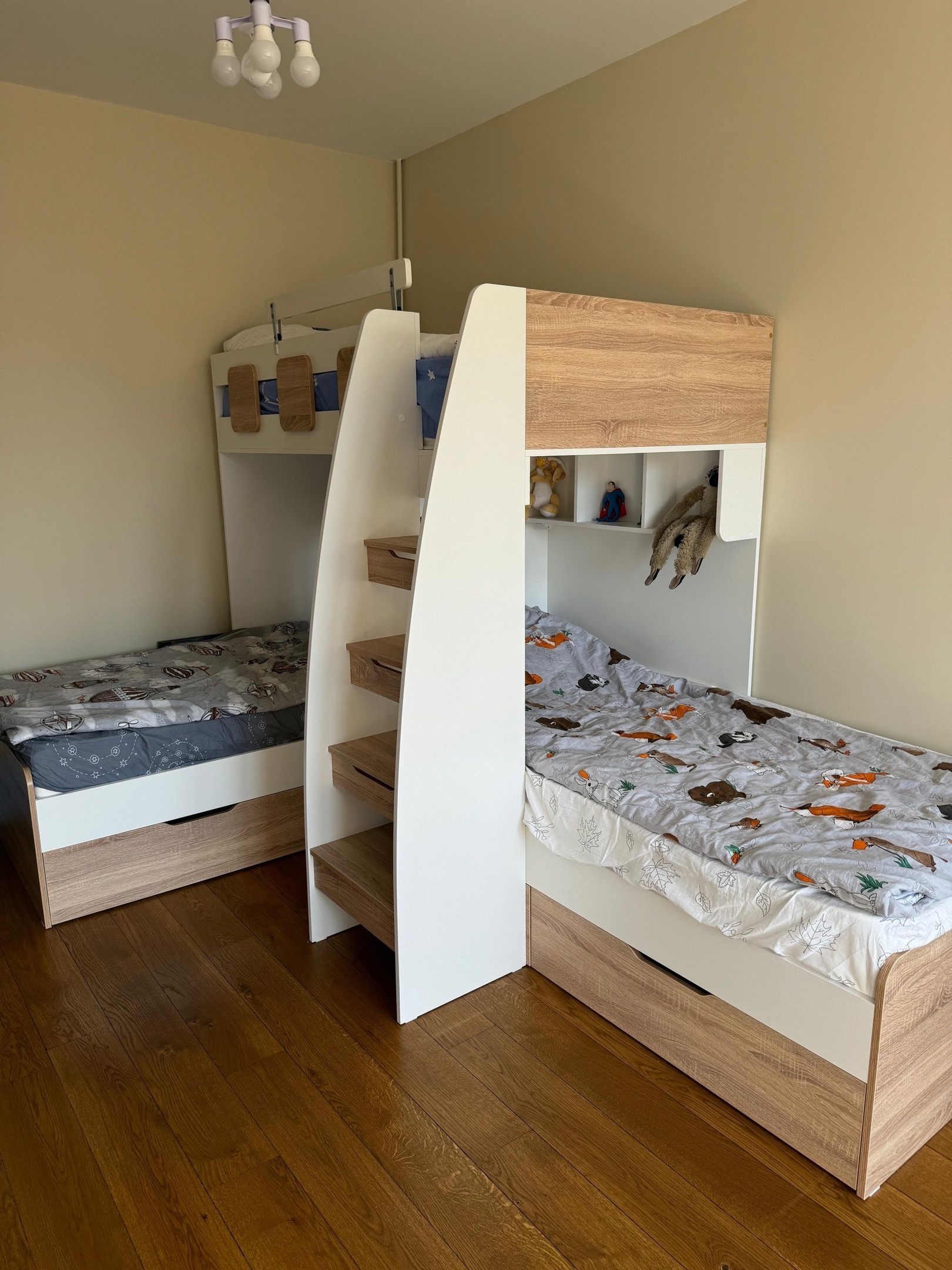 Вместо них - цельный и прочный настил из ЛДСП, который выдерживает сверхвысокую нагрузку и позволяет расположиться даже взрослому с ребенком.