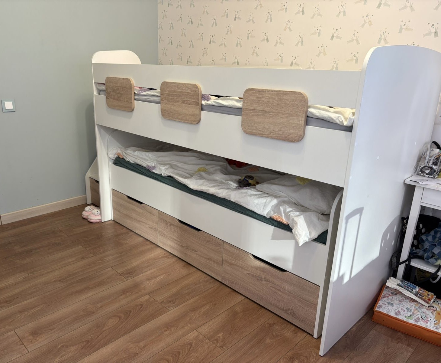 Добрый день. 5 лет назад, купили двухъярусную кровать. Кровать просто супер. Мои непоседы, спустя два года сломали ступеньку от лестницы, позвонила в сервисный центр, бесплатно изготовили деталь, мастер приехал все установил, быстро и качественно. В этом году в мае дети сломали верхний бордик, думала "влетил в копеечку". Позвонила в сервисный центр, опять:)! Сегодня нам абсолютно бесплатно изготовили и заменили борд. Мастер очень быстро всё заменил. Огромное Вам спасибо за работу, качество и быстроту работ. Побольше Вам благодарных клиентов. Процветания и успехов.