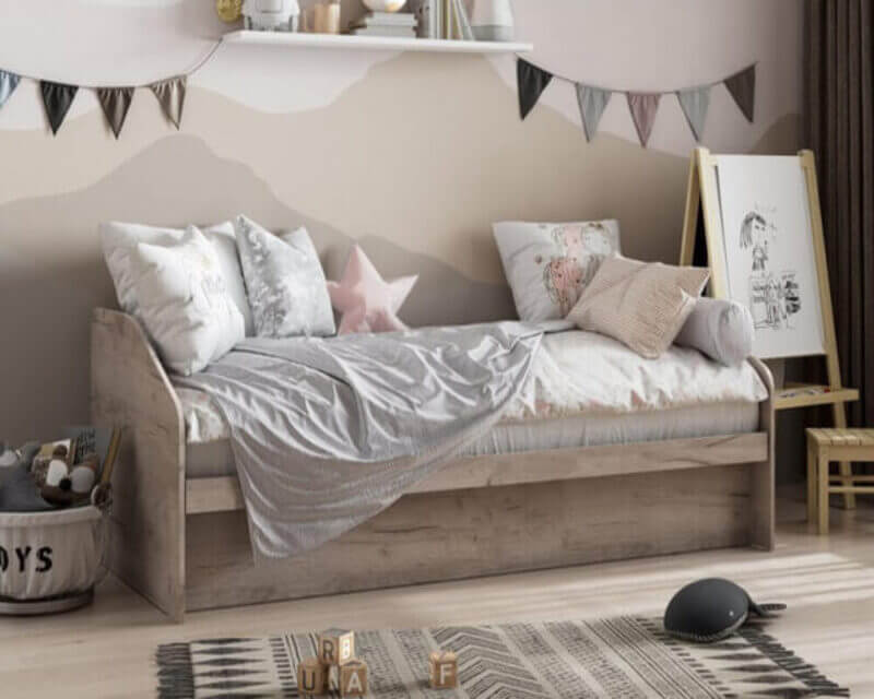- Практичность. Дети быстро растут, поэтому мебель лучше подбирать не по текущему возрасту, а с небольшим запасом на несколько лет. Школьникам можно взять варианты, где длина спального места регулируется, есть дополнительные функции, которые легко подстраиваются под растущий организм.