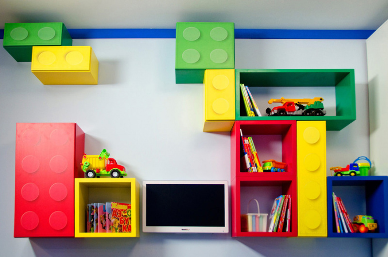 Организация и расположение предметов на полках в детской комнате